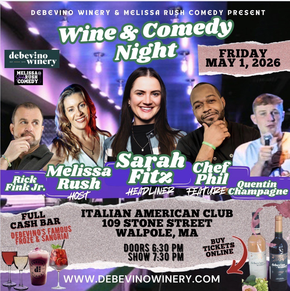 Are you ready for another night of laughter, Debevino wine or maybe a slushie? Then get your tickets now to the next comedy show, at the Italian American Club, 109 Stone St., in Walpole — featuring fantastic comedians who are sure to put the chuckle in your chardonnay!